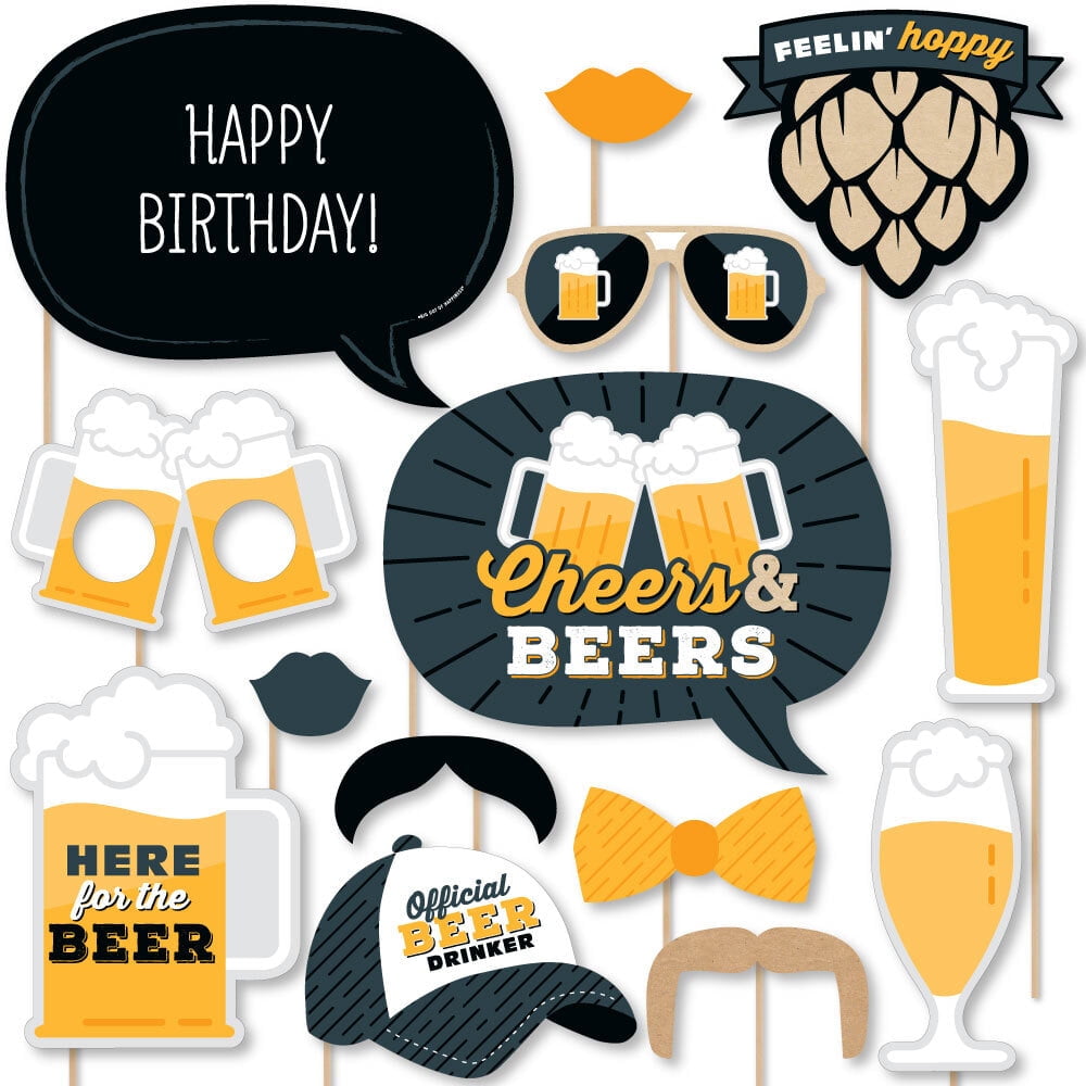 Cheers And Beers Happy Birthday Birthday Party Photo Booth Props Kit 20 Count Walmart Com